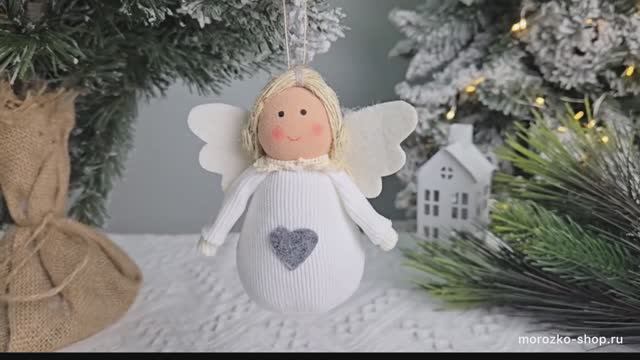 https://www.morozko-shop.ru/ Подвесное ёлочное украшение АНГЕЛ БАМБИНО в белом, текстиль, 11 см, 3-1336-2