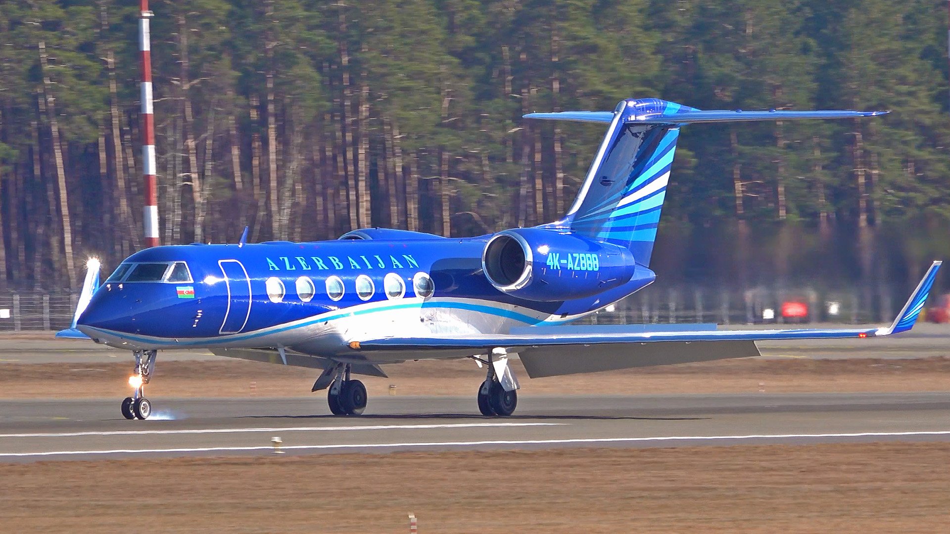 Синий, красивый, азербайджанский: 4K-AZ888. Посадка и взлёт в лучах солнца