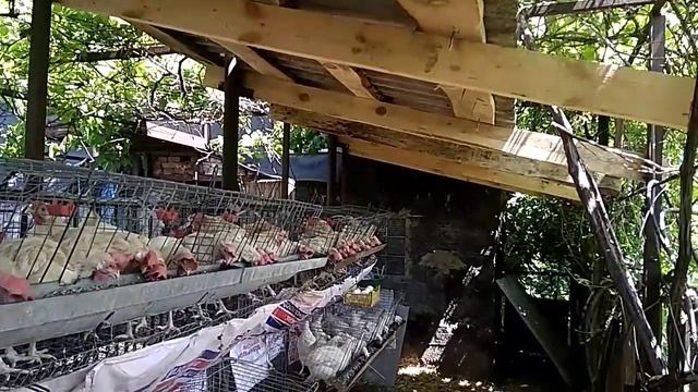 Клеточное содержание кур-несушек летом на улице.