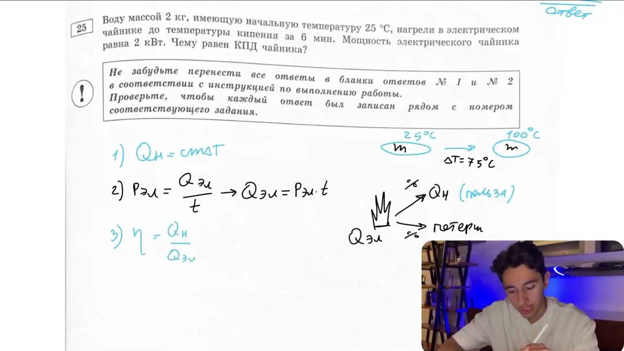 Воду массой 2 кг, имеющую начальную температуру 25 °С, нагрели в электрическом чайнике - №28165