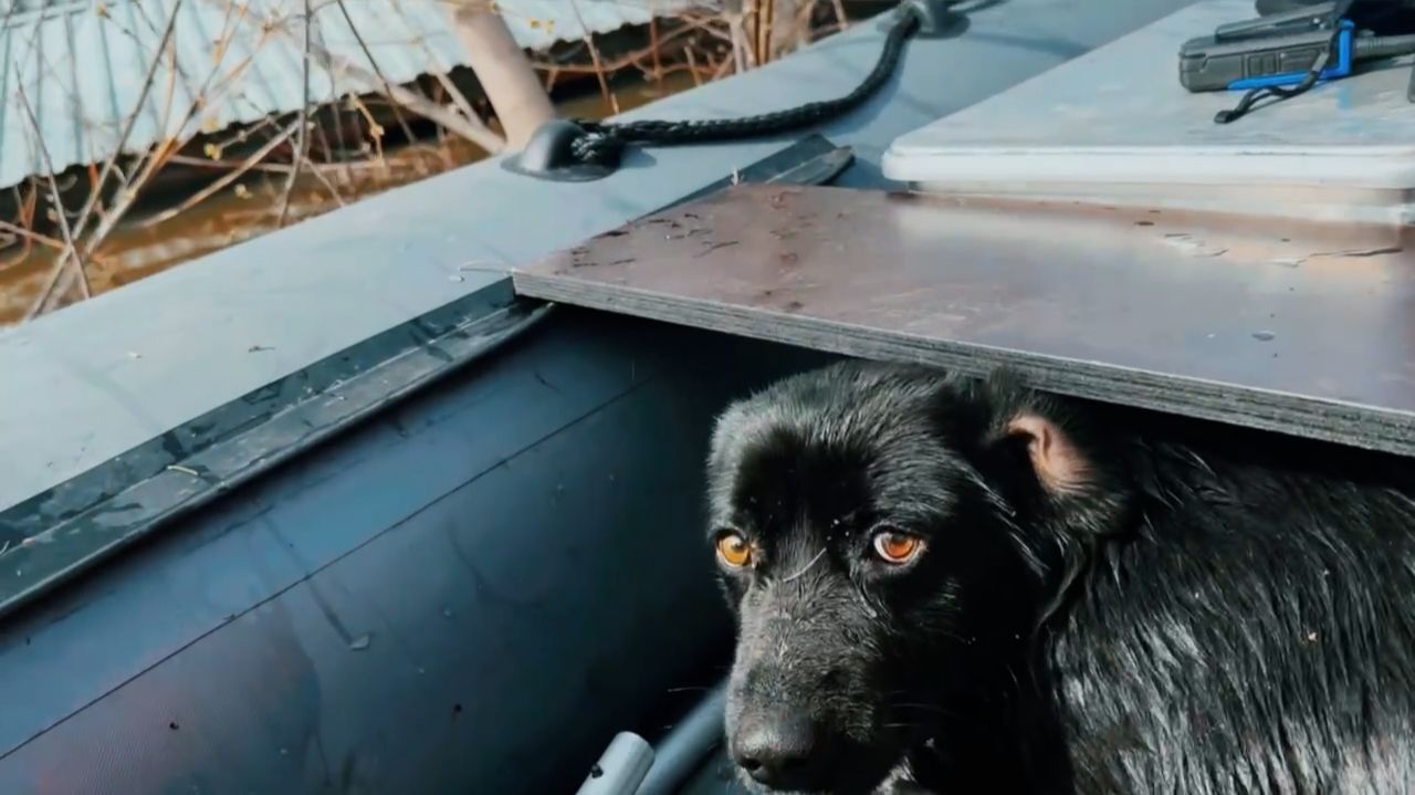Спасатели вытащили из-под воды собаку во время наводнения в Оренбурге