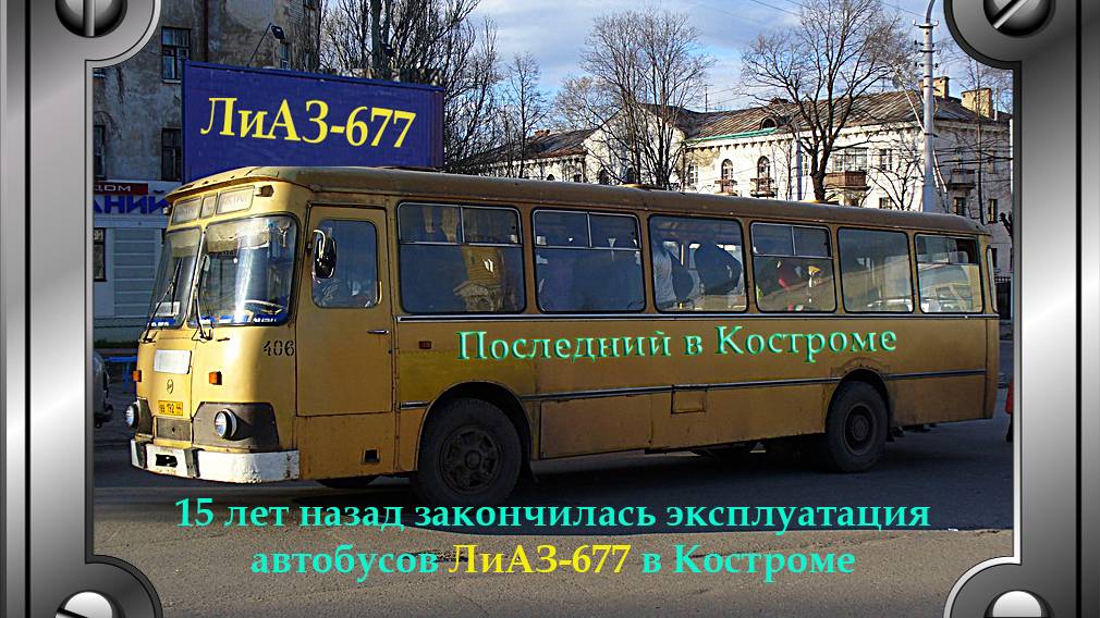 На видео последний автобус ЛиАЗ-677М в Костроме (№406, ПАТП-3)