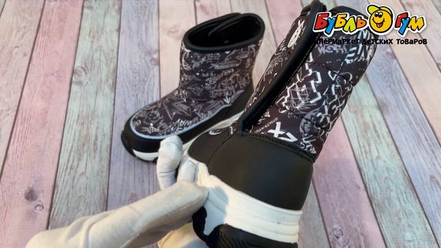 335101 Сапоги Pasito зимние на широкой липучке с граффити принтом черные