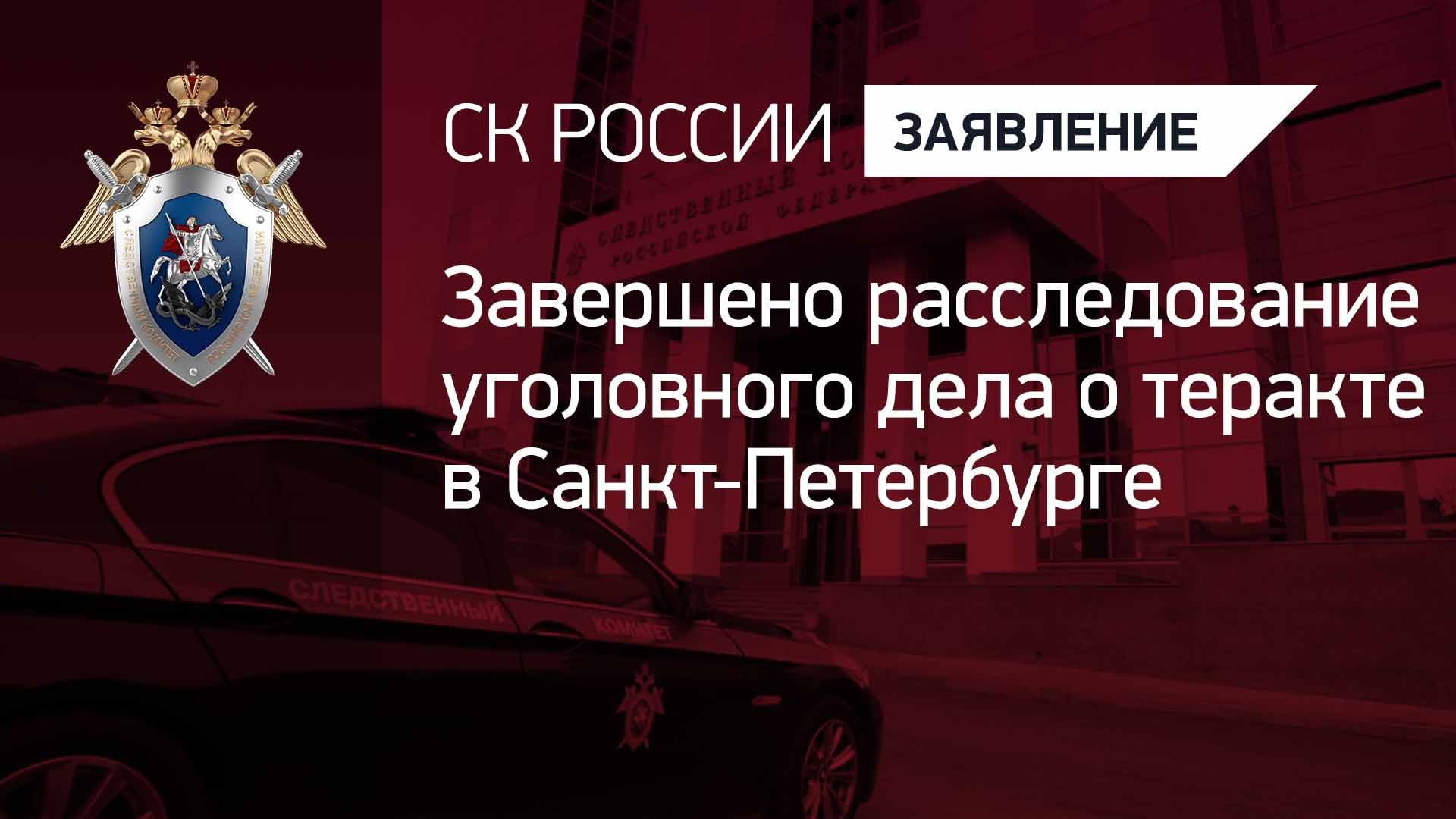 Завершено расследование уголовного дела о теракте в Санкт-Петербурге