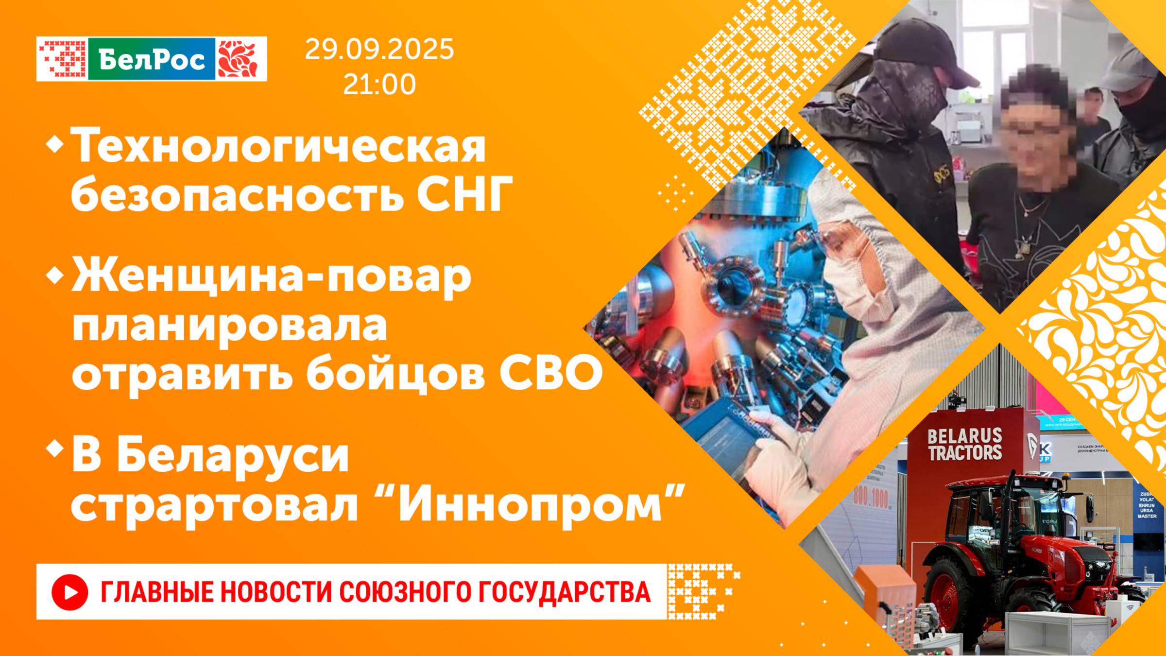 Закадровый текст озвучивает *ИИ Антон* Новости 29.09.2025 на 21:00 - Заседание Совета глав правительств Содружества Независимых Государств прошло в Минске - В Севастополе арестована женщина-повар, передававшая Киеву данные о дислокации кораблей ЧФ - Старт выставки Иннопром - В Беларуси завершился форум «БлогБай. Сила в правде!» Смотрите главные новости Союзного государства на телеканале БелРос. Ссылки на наши соц. сети Сайт: http://belros.tv/ Telegram: https://t.me/belrostv Одноклассники: https://ok.ru/group/55657426976918 ВКонтакте: https://vk.com/belrostv TikTok: https://www.tiktok.com/@belros_tv?_t=... RuTube: https://rutube.ru/channel/23501830/ Яндекс. Дзен: https://zen.yandex.ru/belrostvv Наши подкасты на Яндекс. Музыке: https://music.yandex.ru/album/25615251 #главныеновости #новостисегодня #СоюзноеГосударство