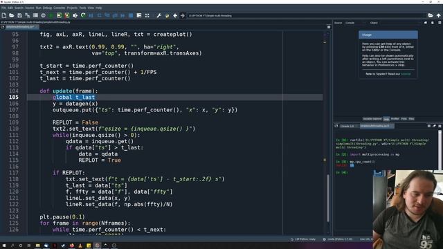 A look into simeltaneous multithreading in python using the multiprocessing library. Off load expensive tasks to a background process. This library can be useful for when the single core performance of some code is limiting the responsiveness of your program. By creating multiple processes and sharing data between them using Queues, performance can be increased. link to talked about article: https://www.hebergementwebs.com/programming/concurrent-programming-in-python-is-not-what-you-think link to source: https://github.com/davesspace/example-multiprocessing-simple