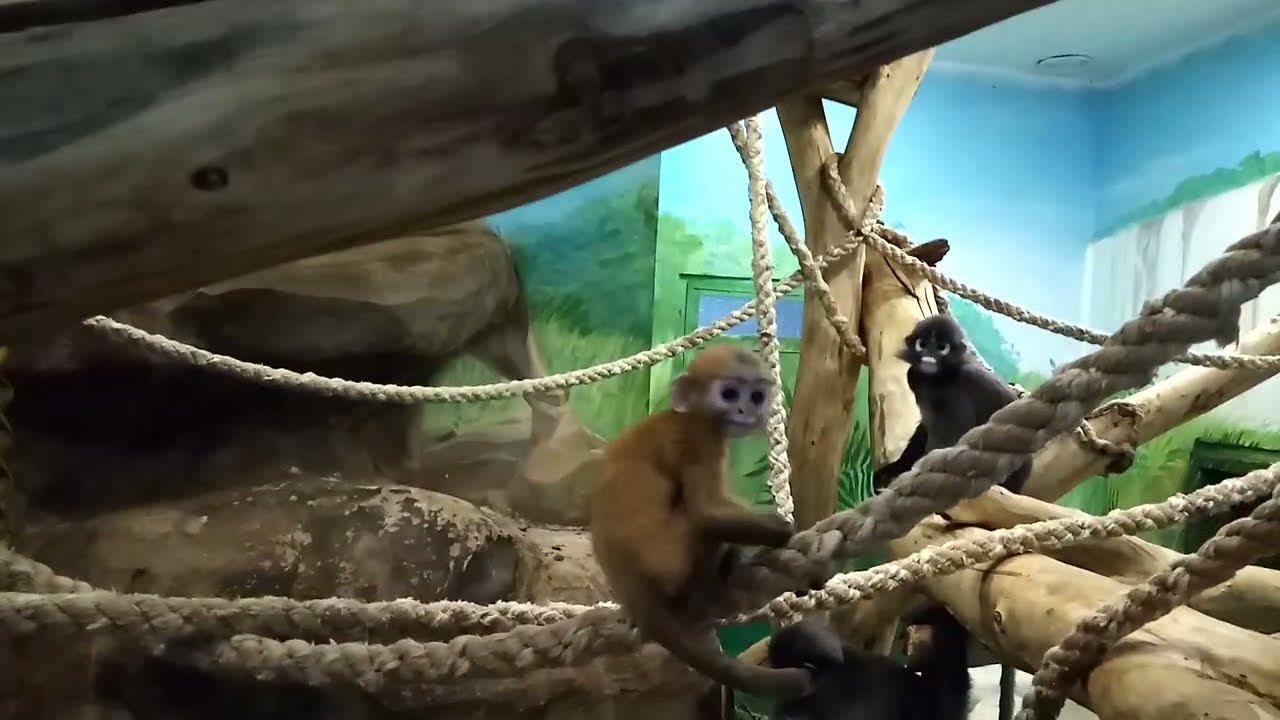 Детёныш очковых лангуров постепенно чернеет 08.04.2024
