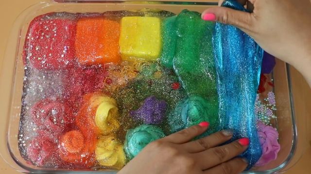 Слайм «Радужный единорог»! Макияж и, блёстки смешиваем со слаймом! Увлекательное видео со слаймом! ★