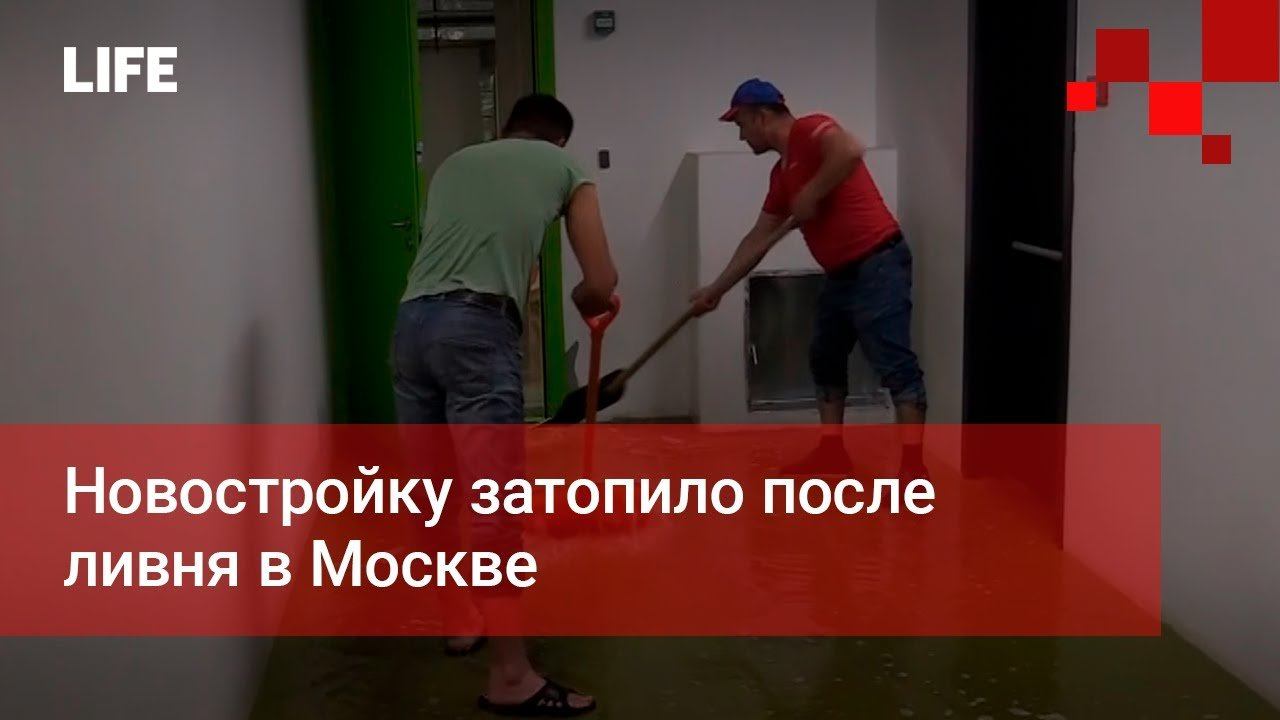Новостройку затопило после ливня в Москве