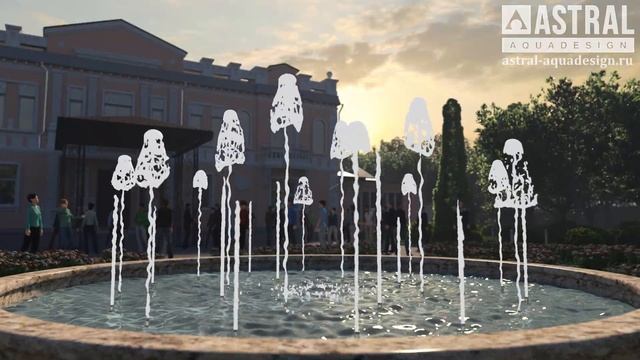 Круглый музыкальный фонтан диаметром 7,0 метров на территории усадьбы, г. Тверь
