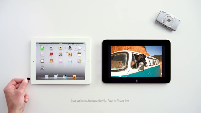 Microsoft выпустила ролик, в котором сравнивает планшеты Dell XPS 10 на Windows RT с iPad: возможности зума, использования SD карты, нескольких действий одновременно, разница в цене. Счет получился не в пользу Apple.