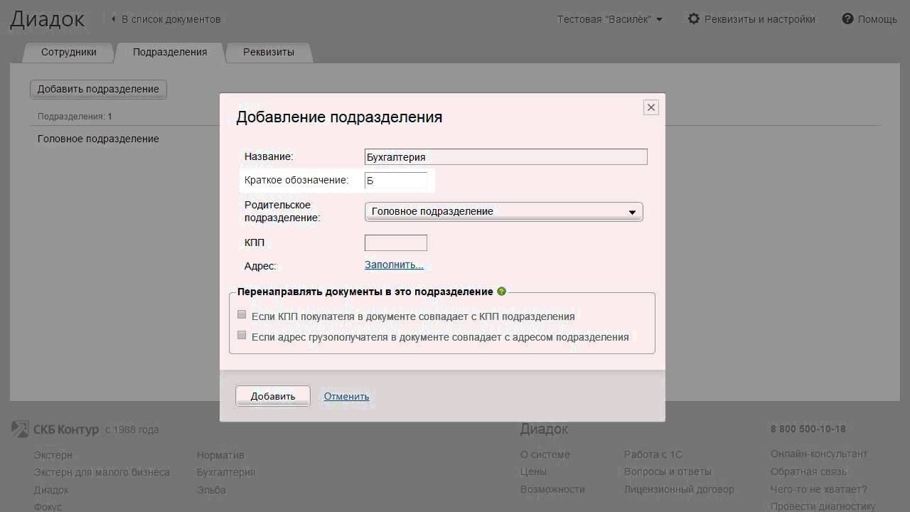 Работа с подразделениями