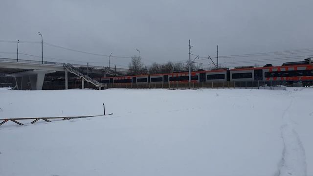 25 февраля 2021 года в 14:14 Перегон Красный Строитель-Царицыно Курское направление Московская железная дорога Диаметральный электропоезд Подольск-Нахабино Lastochka MCD ES2G-132 departure from Pokrovskaya February 25, 2021 at 14:14 ferry Krasny Stroitel-Tsaritsyno Kurskoe direction Moscowskaya railway Diametral electric train Podolsk-Nakhabino