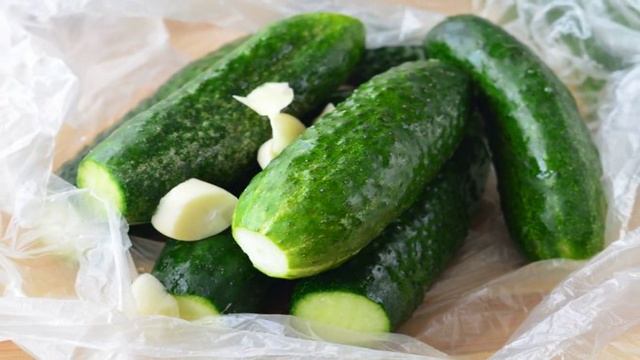 Огурцы малосольные в пакете с чесноком