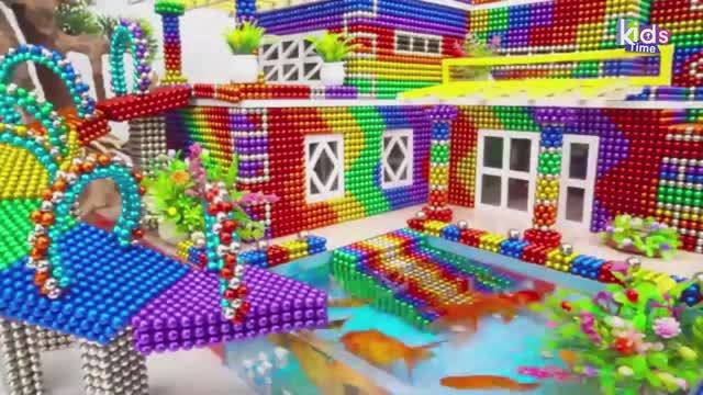 Магнитные шарики - Сделай сам - Построй виллу с изогнутой крышей, горкой для бассейна из магнитных ш