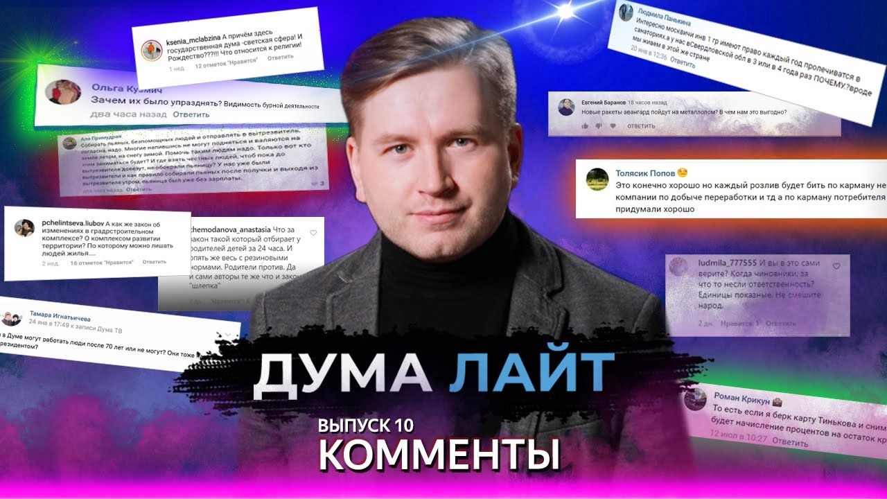 Вы часто оставляете свои вопросы в комментариях под нашими видео, а Данил Гусельников отвечает на них. В новом выпуске расскажем о комплексном развитии территории и возрастных ограничениях депутатов. Как накажут чиновников за хамство? И что будет с нашими ракетами? Смотрите и ставьте лайки! Оставляйте свои вопросы под видео, и мы обязательно на них ответим. 00:00 Погнали 00:10 Как будут переселять россиян? 02:25 О возрасте депутатов 03:08 Как будут наказывать чиновников за хамство? 04:21 Почему Рождество является государственным праздником? 05:39 Почему в регионах разные льготы? 07:04 Что будет с нашими ракетами? #ДумаТВ #Госдума #ДумаЛайт Instagram: https://instagram.com/dumatv Facebook: https://facebook.com/tvduma ВКонтакте: https://vk.com/tvduma Одноклассники: https://ok.ru/dumatv https://www.youtube.com/channel/UCur7mt-vhySv81SS33zSlgA