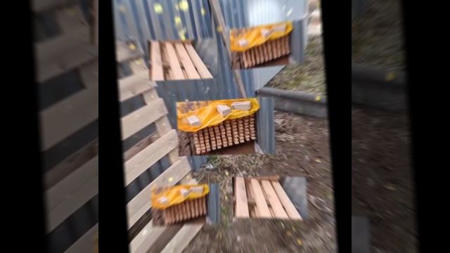 1000020656.mp4 (Собака помогает укладывать рейки в штабель у дома А-фрейм)