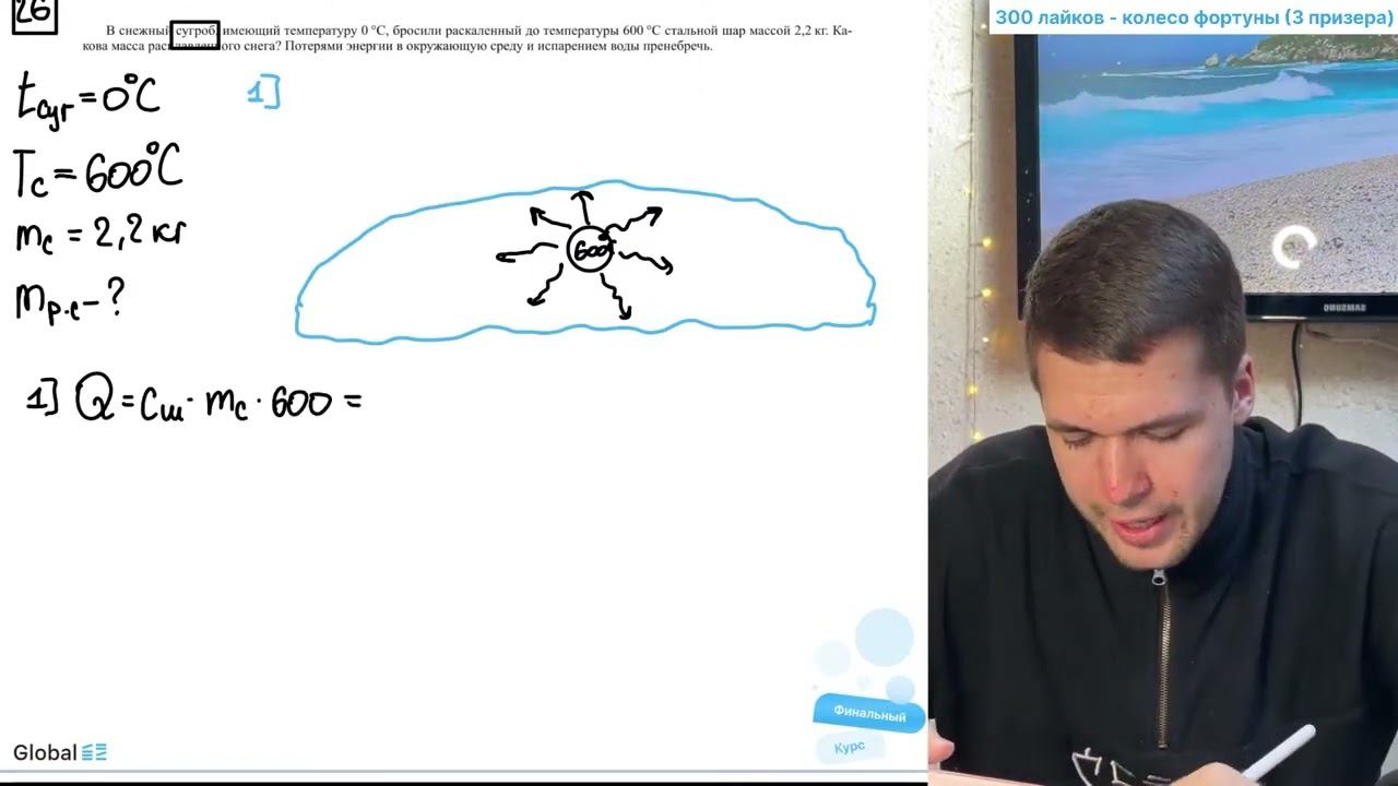 В снежный сугроб, имеющий температуру 0 °C, бросили раскаленный до температуры 600 °C стальной - №