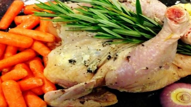 Одно из простых и вкусных новогодних горячих блюд - печеная курица. Хороша она и на холодное (если за ночь остынет, а так оно и будет). Запечем мы ее в духовке с морковкой, луком и свежим розмарином. Ингредиенты: Курица1 штука, СольПо вкусу, Масло сливочное2 ст. ложки, Черный перец свежемолотыйПо вкусу, Розмарин свежий (пучок)1 штука, Луковица1 штука, Чеснок1 штука, Беби-морковь600 грамм, Благодарим за просмотр! Подписывайтесь на канал🍕 Поделитесь своим мнениенм о рецепте в комментариях!