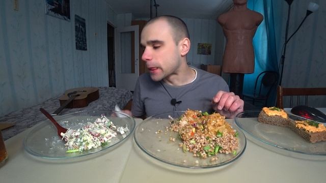 МУКБАНГ ГРЕЧКА / ТЕФТЕЛИ С ПОДЛИВОМ / САЛАТ С ФАСОЛЬЮ БУТЕРБРОДЫ / ОБЖОР/ EATING Mukbang ASMR / АСМР