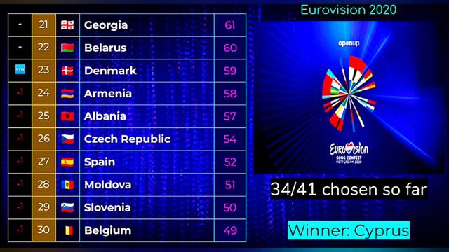 songs so far: 🇦🇱Albania: Shaj - Arilena Ara 🇦🇲Armenia: Chains On You - Athena Manoukian 🇦🇺Australia: Don't break Me - Montaigne 🇦🇹Austria: Alive - Vincent Bueno 🇧🇾Belarus: Da Vidna - Val 🇧🇪Belgium: Release Me - Hooverphonic 🇧🇬Bulgaria: Tears Getting Sober - Victoria 🇭🇷Croatia: Divlji Vjetri - Damir Kedzo 🇨🇿Czech Republic: Kemama - Benny Cristo 🇨🇾Cyprus: Running - Sandro 🇩🇰Denmark: Say Yes - Ben & Tan 🇪🇪Estonia: What is Love - Uku Suviste 🇫🇮Finland: Looking Back - Aksel Kankaanranta 🇫🇷France: The Best In Me - Tom Leeb 🇬🇪Georgia: Take Me As I Am - Tornike 🇬🇷Greece: Superg!rl - Stefania 🇮🇸Iceland: Think About Things - daði & Gagnamagnið 🇮🇱Israel: Feker Libi - Eden Alene 🇮🇪Ireland: Story Of My Life - Lesley Roy 🇮🇹Italy: Fai Rumore - Diodato 🇱🇻Latvia: Still Breathing - Samanta Tīna 🇱🇹Lithuania: On Fire - The Roop 🇲🇩Moldova: Prison - Natalia Gordienko 🇳🇱Netherlands: Grow - Jeangu Macrooy 🇳🇴Norway: Attention - Ulrikke Brandstrorp 🇵🇱Poland: Empires - Alicja Szemplińska 🇷🇴Romania: Alcohol You - Roxen 🇷🇸Serbia: Hasta La Vista - Hurricane 🇸🇮Slovenia: Voda - Ana Soklic 🇪🇦Spain: Universo - Blas Canto 🇨🇭Switzerland: Répondez-Moi - Gjon's Tears 🇺🇦Ukraine: Solovey - Go_A 🇬🇧United Kingdom: My Last Breath - James Newman subscribe like comment share #Eurovision #Denmark #2020