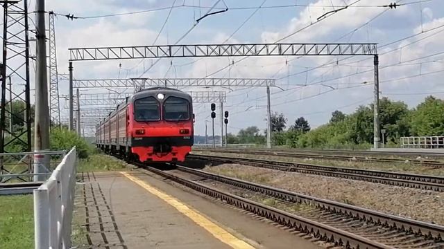 Электропоезд ЭД4М-0282 с пригородным поездом №6016 Миасс-1 — Челябинск-Главный в 6-ти вагонной составности прибывает на 1-й путь Ст. Смолино, г. Челябинск, Челябинская обл., ЮУЖД Дата: 08.07.2022