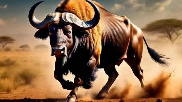 мощный буйвол мускулы которого напряжены в каждом движении