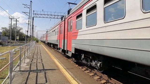 Электропоезд ЭД4М-0220 с пригородным поездом №6016 Миасс-1 — Челябинск-Главный в 6-ти вагонной составности прибывает на 1-й путь Ст. Смолино, г. Челябинск, Челябинская обл., ЮУЖД Дата: 29.08.2022