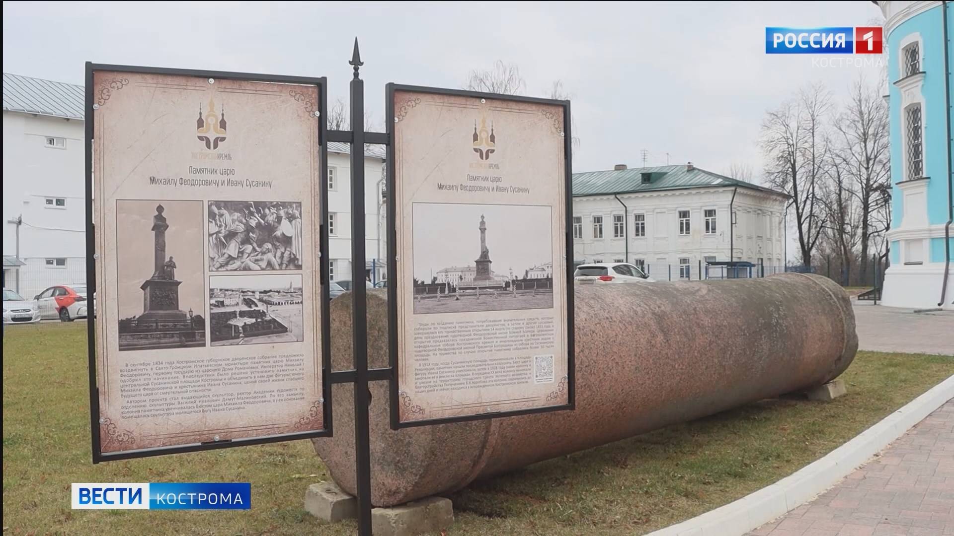 Чудом уцелевшая колонна царского памятника выставлена в Костромском кремле