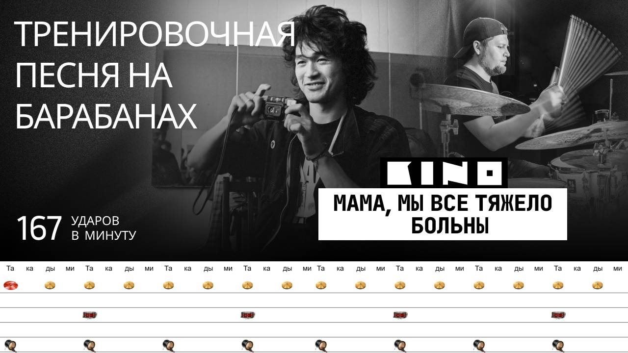 Кино - Мама, мы все тяжело больны / 167 bpm / Тренировочная песня для барабанов