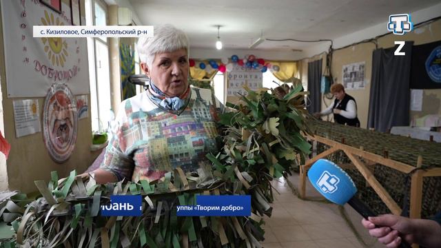 Они плетут маскировочные сети, накидки, костюмы, делают снаряжение, шьют одежду, готовят супы и выпечку, собирают гуманитарную помощь. В Крыму желающие помогать фронту объединились в группу «Творим добро». Более тринадцати филиалов по всему Крыму. На благо родины в команде трудятся больше четырёх тысяч человек. О их деятельности – в специальном репортаже.