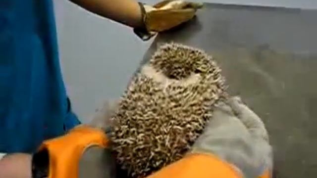 Маленький ёжик испугался добрых ветеринаров.