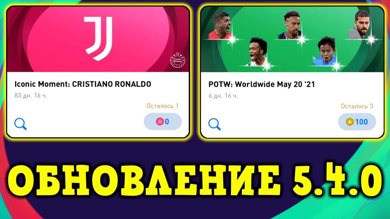 Обновление 5.4.0+ИКОНА БЕСПЛАТНО+Команда Недели POTW в PES 2021 Mobile