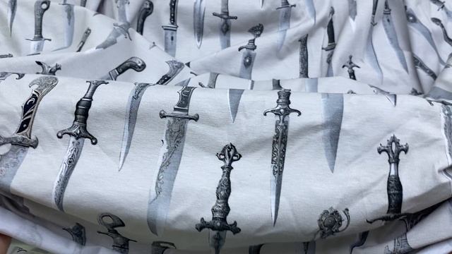 Трикотаж серо-бежевого цвета с принтом ножи 38275