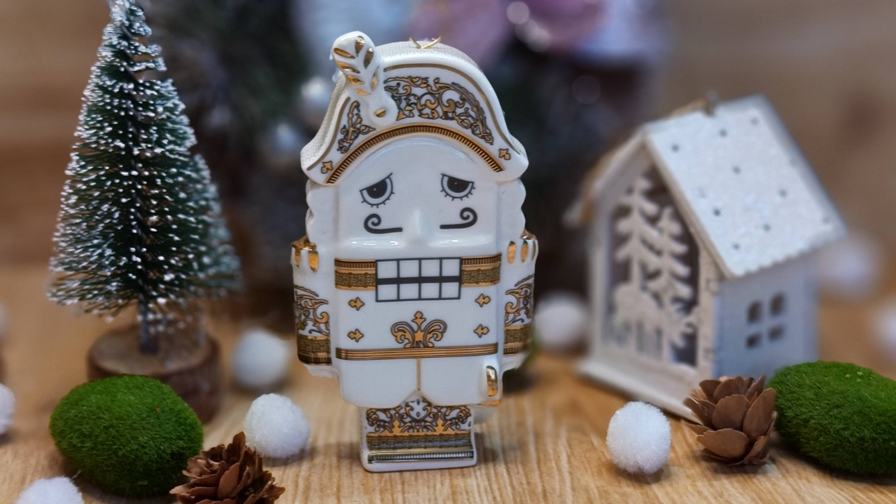 Ёлочная игрушка в золоте "Щелкунчик", гжельский фарфор