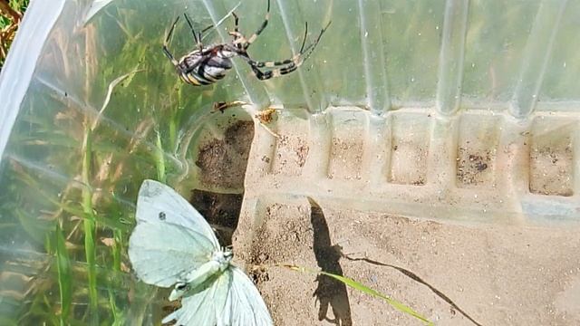 паук Оса и белая бабочка