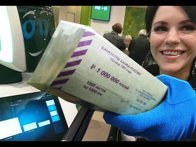 Распаковка кучи денег - миллион рублей банкнотами по 1000 из обращения в кирпиче СберБанка
