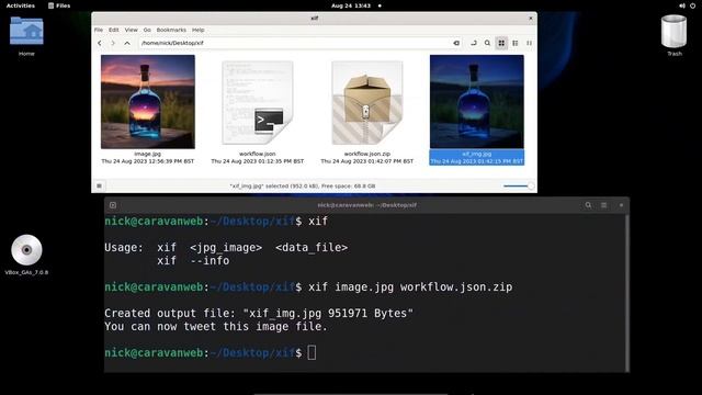 Using jzp to embed a ComfyUI workflow.json file (zip) within a JPG image for easy sharing over Twitter. jzp: https://github.com/CleasbyCode/jzp Image Credit: https://comfyanonymous.github.io/ComfyUI_examples/sdxl/
