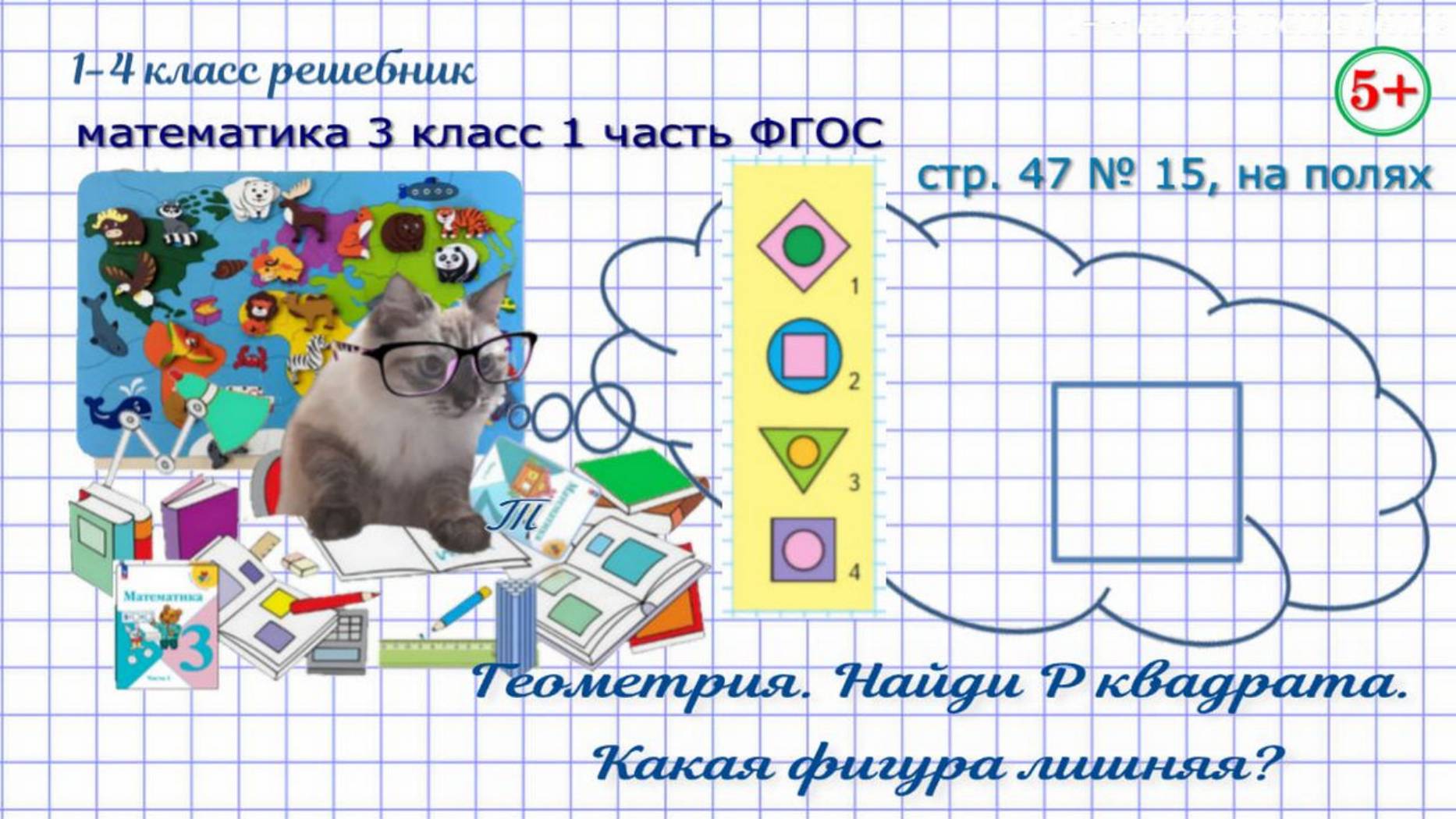 Стр 47 № 15, на полях найди периметр квадрата, лишнюю фигуру математика 3 класс 1 часть ФГОС 2023