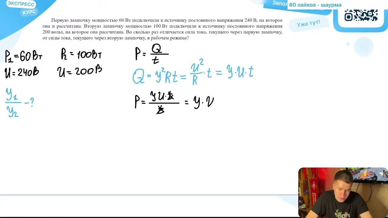 Первую лампочку мощностью 60 Вт подключили к источнику постоянного напряжения 240 В, на - №24739