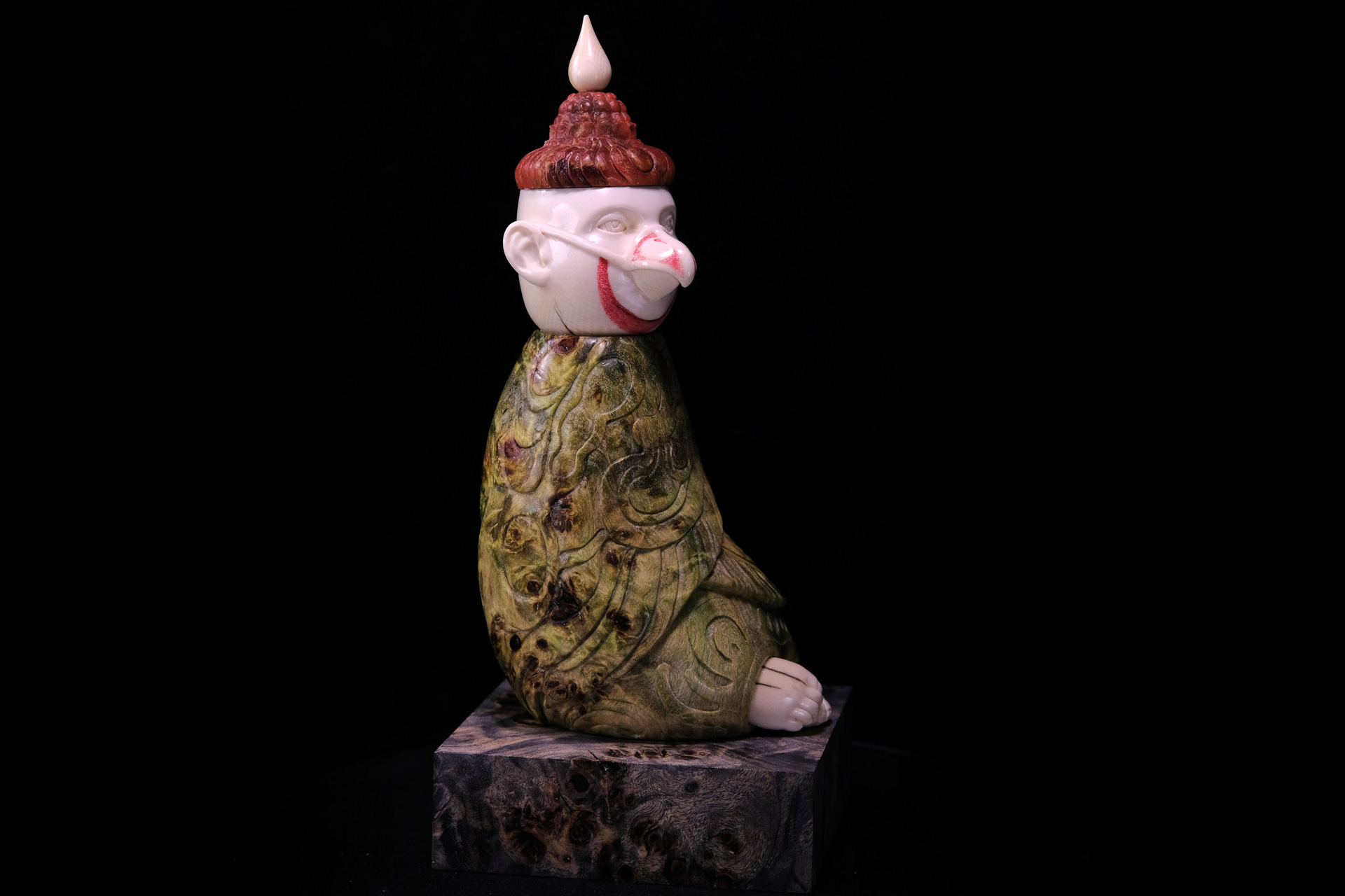 скульптура «Птичка», бивень мамонта, стабилизированная древесина, гравировка, высота 16,5 см
