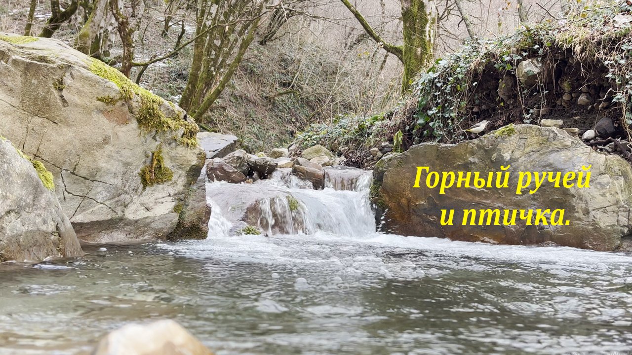 Горный ручей и птичка. Relax.?ЛАЗАРЕВСКОЕ СЕГОДНЯ?СОЧИ.