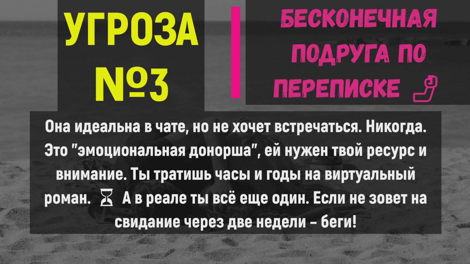 Привет! Ты хочешь знать, как правильно знакомиться с девушками? Я тоже думал, что знаю, но жестоко обжегся, пытаясь найти свою любовь в интернете. Это видео — не просто рассказ о моих ошибках, это суровая правда о том, почему ТОП-5 ОПАСНОСТЕЙ для мужчин на сайтах знакомств почти разрушили мою жизнь, и почему тебе стоит немедленно переключаться на реальный мир! В поисках девушки онлайн, я столкнулся с мошенничеством, эмоциональными манипуляциями и фейками. Я потерял деньги, время и самое главное — уверенность в себе. В этом ролике я дам тебе не просто советы, а правила выживания, основанные на моем горьком опыте. Если ты ищешь знакомства в сети для серьезных отношений и постоянно терпишь неудачу, ты найдешь здесь ответы. 🚩 красные флаги: учись на чужих ошибках Я подробно расскажу о пяти критических угрозах, которые подстерегают каждого мужчину в онлайн-дейтинге: от финансовых ловушек, где тебя используют как банкомат, до эмоциональных "подруг по переписке", которые просто тратят твое время. Ты научишься распознавать ложь и манипуляции до того, как они нанесут тебе ущерб. Мой опыт — это твоя защита! 🎯 главная цель: выход в реал Самая важная идея, ради которой стоит досмотреть видео до конца, ждет тебя на последнем слайде. Я называю это СЕКРЕТНАЯ УГРОЗА №6. Она не про девушек, она про тебя и твое будущее. Это причина, почему ты до сих пор не знаешь, как правильно знакомиться с девушками в реальной жизни. Ты поймешь, почему постоянный онлайн-поиск делает тебя слабым и как перестать терять себя в виртуальном мире. Твой успех ждет тебя не на экране, а в ближайшем кафе. Я делюсь этим, чтобы уберечь тебя. Искренне надеюсь, что мой провал станет твоим трамплином к счастливым и настоящим отношениям. Поддержи канал и мою работу, чтобы я мог делиться с тобой еще более ценными советами и историями. Ссылка для материальной поддержки находится в описании канала. Спасибо за твою поддержку! #КакПравильноЗнакомитьсяСДевушками #ТОП5ОПАСНОСТЕЙ #ЗнакомстваВИнтернете #СайтыЗнакомств #ОшибкиМужчин #КакНайтиДевушку #ОнлайнДейтинг #ЗнакомстваДляМужчин #ПсихологияЗнакомств #ТОП5Ловушек #СкрытыеУгрозы #ЗнакомствоВРеале #УспешныеЗнакомства #КакПерестатьБытьОдиноким