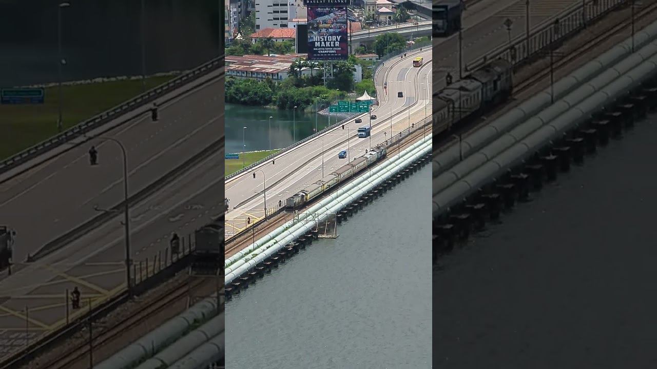 Между Малайзией и Сингапуром ходит поезд! Вид с высотки на другую страну через пролив.
