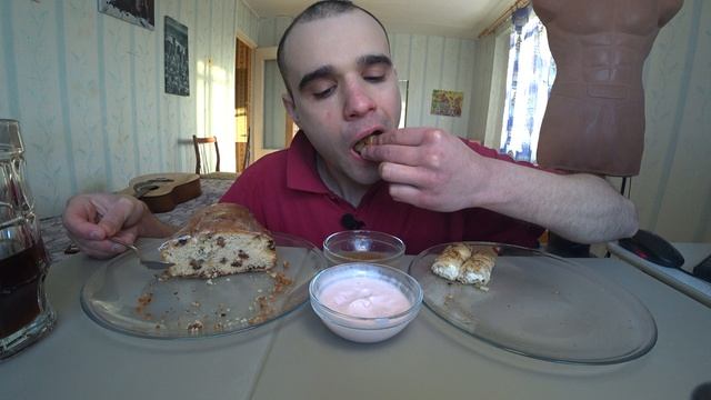 МУКБАНГ БЛИНЫ С ТВОРОГОМ / КЕКС С ИЗЮМОМ/ СЛАДОСТИ/ ЙОГУРТ/ SWEET / CAKES / EATING ASMR Mukbang АСМР