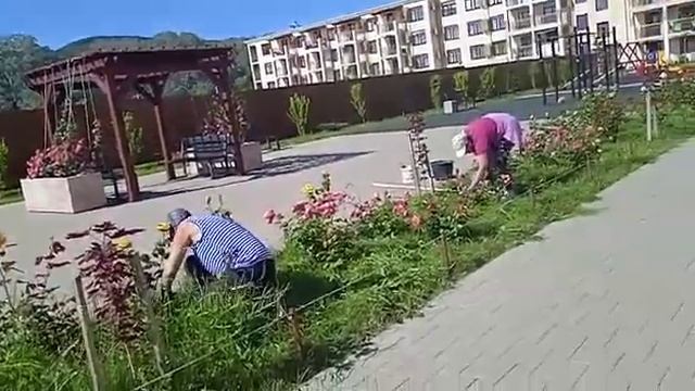 Озеленение - это прежде всего большой человеческий труд. Розарий ЖК Холидей Хаус Сукко. Мирная 11к2