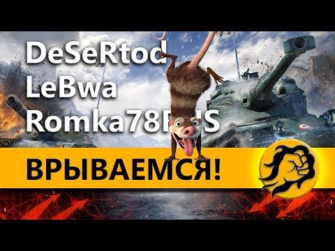Поддержи стримера рублём | Донат — https://donate.lebwa.tv https://goo.gl/Vt3LL9 — Хочешь посмеяться? Пригласил ребят во взвод, Дезертода и Ромку. Стрим получился веселый. Приятного вам просмотра. Каналы Ребят: https://goo.gl/u2Za47 — RomkaTV https://goo.gl/EAFFVz — DESERTOD https://yt.lebwa.tv — Ты еще не подписался?!? https://vk.lebwa.tv — Группа ВКонтакте https://lebwa.tv — Официальный сайт info@lebwa.tv — По вопросам сотрудничества пишите на почту https://friend.lebwa.tv — Канал моего кореша Трансляция от 02.10.2018 Текущая версия игры 1.1.0.1 #world_of_tanks #wot #lebwa #бои_wot #танки #корм2 #excalibur #битва_блогеров #RomkaTV #DESERTOD