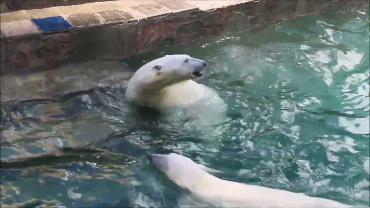 Герда родилась в Москве 20 ноября 2007 года. Её мама Симона, папа Врангель. В Новосибирск переехала 05.08.2008. В 2013 году у Герды и Кая родилась Шилка. В 2015 году она переехала в Японию. В 2015 году родился Ростик. 6 декабря 2018 года он переехал в Китай. В 2018 году родились Норди и Шайна. Данная пара молодых медведей находилась вне экспозиции зоопарка, поэтому посетители не могли их видеть. Передача молодых медведей в другой зоопарк не планируется, — ответили на запрос редакции в пресс-центре мэрии Новосибирска. Но Шайна 20 января 2024 года переехала в Ижевский зоопарк. Белые медведи одиночные животные. Как правило, миролюбивы по отношению друг к другу, но между самцами в брачный период случаются стычки. Взрослые самцы могут нападать на медвежат. Гон с марта по июнь. Продолжительность жизни — максимум 25—30 лет; в неволе рекорд долгожительства — 42 года. Вес очень крупных самцов в некоторых частях ареала 700 и даже 800 кг: есть данные о зверях весом до 1000 кг. Обычно вес меньше. Самки всегда не только меньше, но и значительно легче самцов. Так, самцы в восточной Гренландии в состоянии нормальной упитанности весят 400—450 кг, хорошо упитанные — до 500 кг, самки, даже очень сытые, здесь же редко весят больше 350—380 кг, т. е. их вес составляет около 75% веса самцов. Длина тела на 3-й день после рождения 28—32 см, средний вес — около 755 г (650—840 г). На 26-й день длина тела увеличивается незначительно — до 35—38 см, а вес возрастает до 1125—1275 г. В возрасте 60 дней самцы весят около 7 кг, самки — около 6 кг при длине тела у первых 58—60 см, у вторых 54—58 см. В возрасте 4 месяца медвежата достигают веса 22—23 кг, в 6-месячном возрасте при длине около 110 см — 40—43 кг, в 8-месячном — 58—62 кг. Длина тела в возрасте с 6 до 9 месяцев нарастает по 6—7 см в месяц. Во время зимнего сна рост почти прекращается. В зоопарке медведей кормят утром морской рыбой, хлеб с рыбьим жиром внутри, морковь, яблоки, морская капуста, яйцо дают сырое. Медвежат подкармливают молоком из соски. На ужин мясо (говядина, конина, куры или индейка). Летом и осенью арбузы, дыни, ранетки, кабачки, тыквы, огурцы. Когда показательное кормление летом бросают живую рыбу. Медвежата с медведицей находятся до 2-х лет. 16 декабря 2022 года Герда родила 2-х медвежат. И это две девочки! Имена дали 25 июня. Медвежат зовут Стрелка и Белка. Обзор вольеров белых медведей https://www.youtube.com/watch?v=mAt_b7JD0B4&list=PLGvf0V-rAHxkpGKJaWIZIUxRKgKiqV3xZ&index=17&t=0s