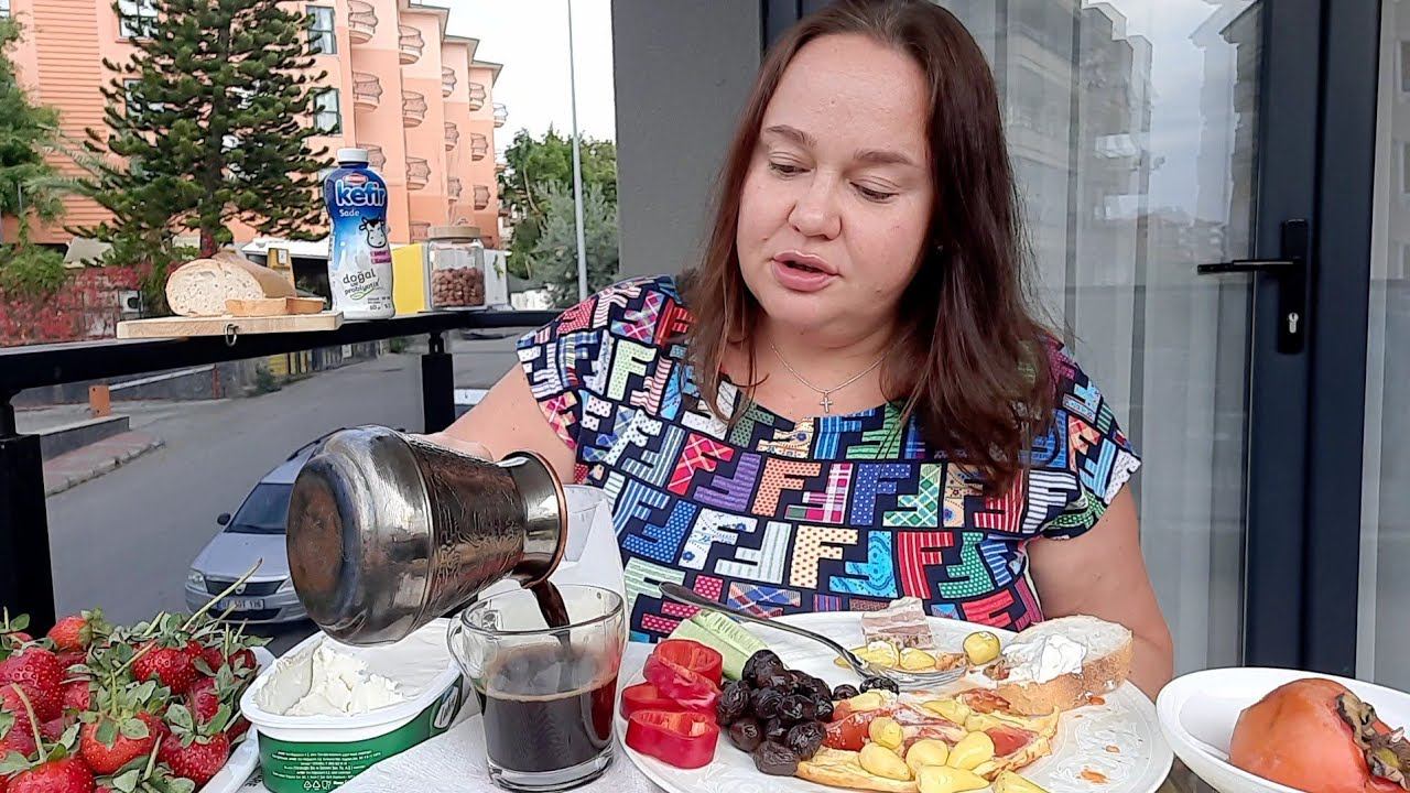 МУКБАНГС АППЕТИТОМ едим СУЛТАНСКИЙ ЗАВТРАКОмлетСвежий хлебКофе☕КефирОвощиОливкиКлубника