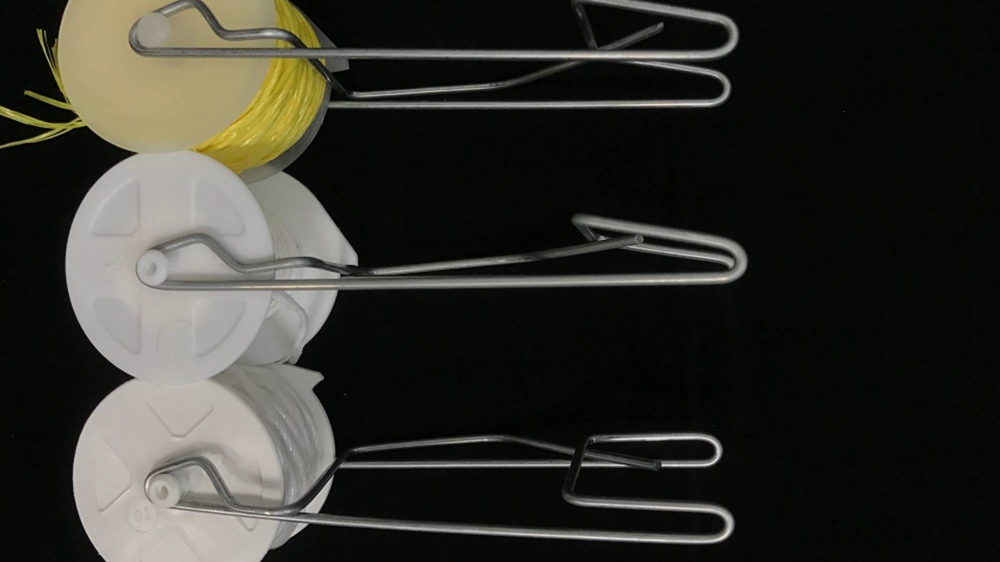 Приспособления для приспускания с металлическим крючком и пластиковой катушкой. Поставляются с намотанным шпагатом.